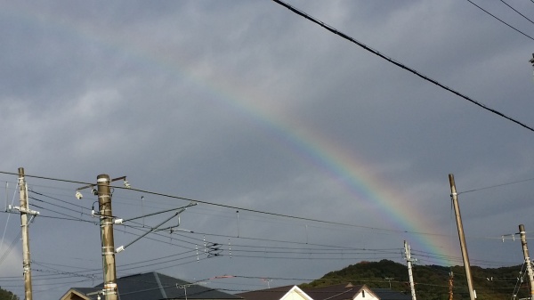 白浜は昨日久しぶりに雨が降りました。今日の朝は雨が降りつつ太陽も少し顔を出す…という天気だったんですが、ふと空を見上げると…