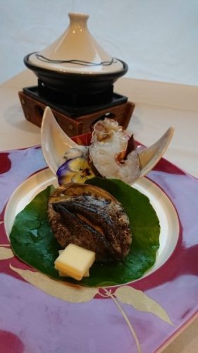 伊勢海老と鮑を陶板焼きでお召し上がりください。