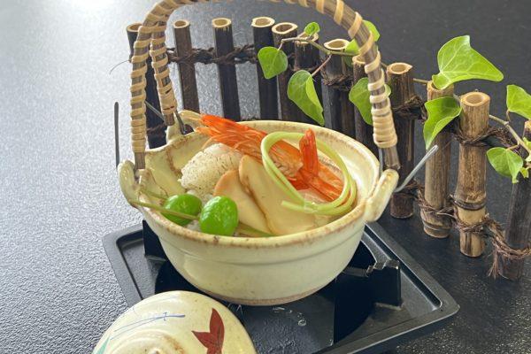 - 碗物松茸の土瓶蒸し(9月・10月) 梅まだいの土瓶蒸し(11月・12月)